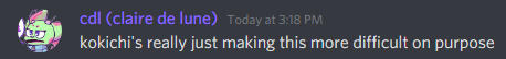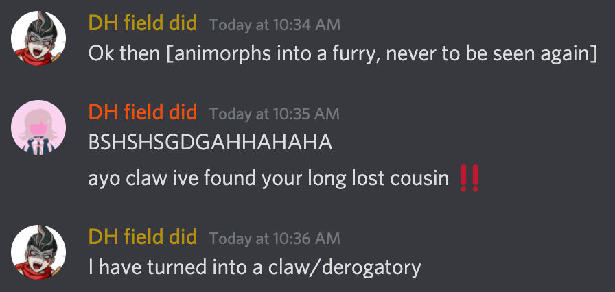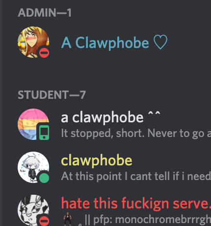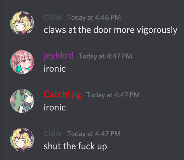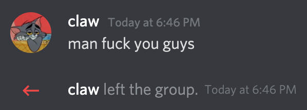 discord: claw#6409 (if you friend request me and i don't know who you are i'll probably deny)